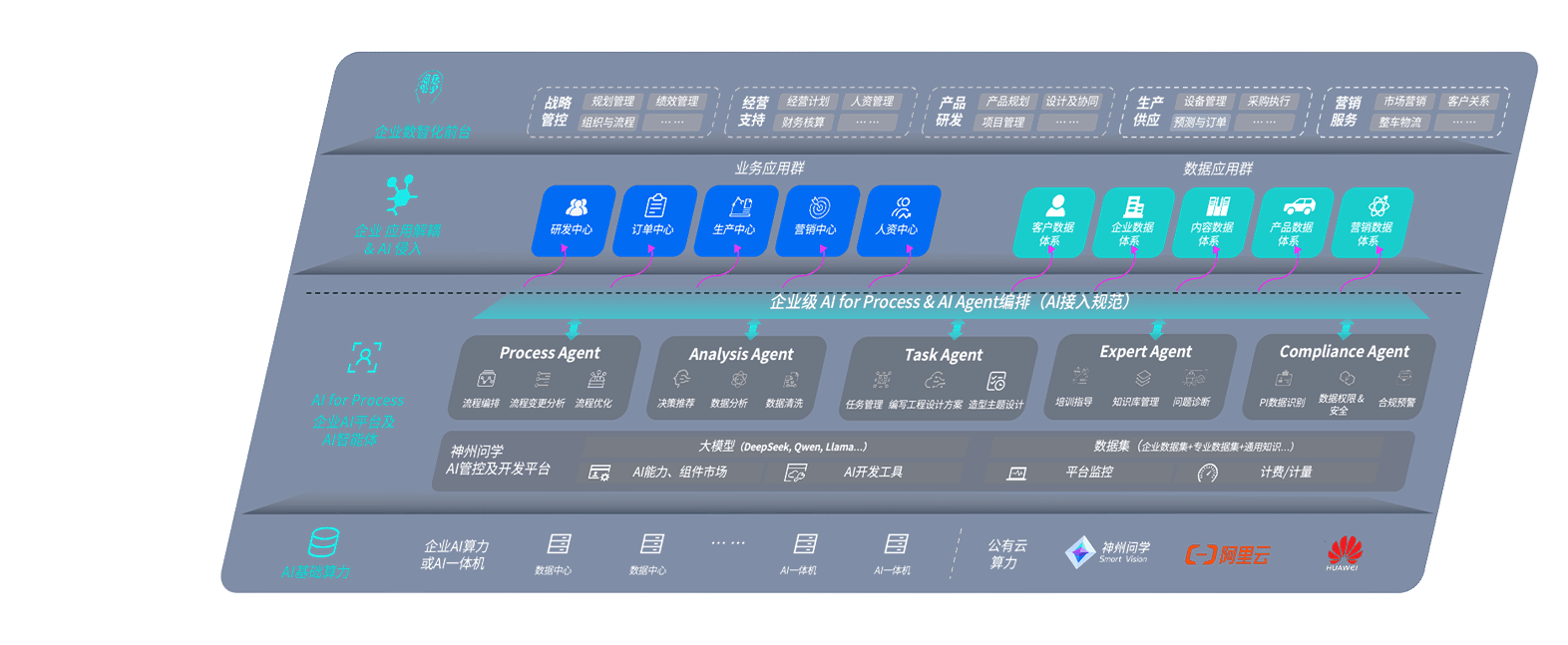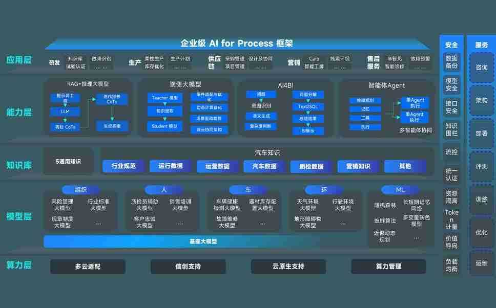 端到端的一站式AI工作空间深度融合了从企业战略规划到日常经营的全流程业务板块,,定向解决车企内部领域多、、、、部门多、、链条长、、场景碎片化等难题,,,,支持车企快速构建以AI为核心的生产力写作体系,,,,实现任务执行与AI能力的无缝集成与交互